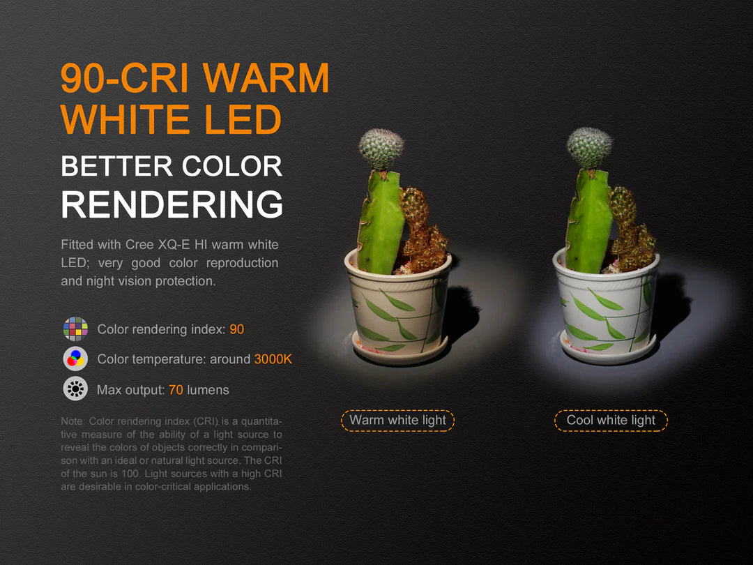 The Fenix LD02 V2.0 is a first-rate EDC penlight, featuring 70 Lumens of warm white light and 200mW UV light. This improved model boasts a petite size of 3.6"x0.5" and weighs just 0.84 ounces. Its Cree XQ-E HI LED provides great color rendering for preserving night vision, as well as accurate color rendering. With one AAA battery, it powers up to 75 hours at 1 Lumen. The stainless steel tail switch manages activation and increases output, and the IP68-rated construction withstands submersion up to 6.5 feet. Get this remarkable EDC penlight now!