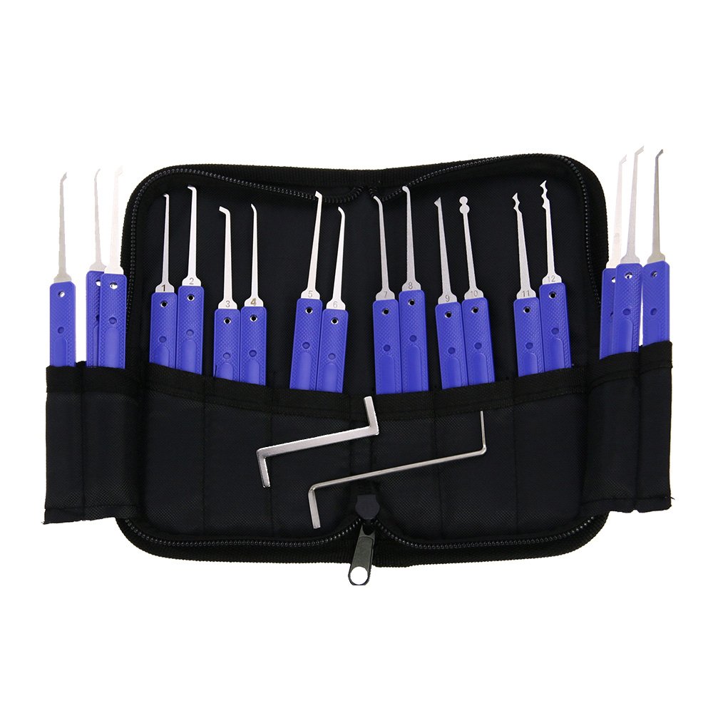 Locksmith KL-318 KLOM 18 Pieces Set 18 Pieces Locksmith Set 18 lock picks and 2 tension tools that are made of tempered stainless steel with anti-slip plastic handles.