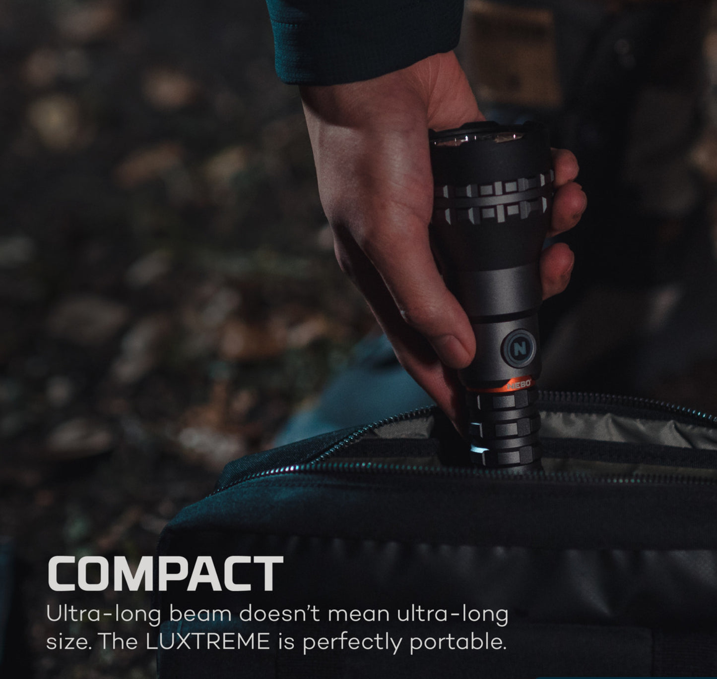 The LUXTREME by NEBO is USB-C rechargeable and features the most advanced optics ever built into a NEBO flashlight. Its 500 lumens may not seem like much, but this flashlight truly goes the distance (over half a mile to be exact). That's right, in high mode, the LUXTREME blasts light up to 900 meters or 2,952 feet away! That means it packs an incredible 202,500 candela! Combine that with an anodized aircraft-grade aluminum body in NEBO's flagship Storm Gray color, as well as a 4,000mAh USB-C rechargeable battery and you've got yourself one of the best lights that NEBO has ever made.