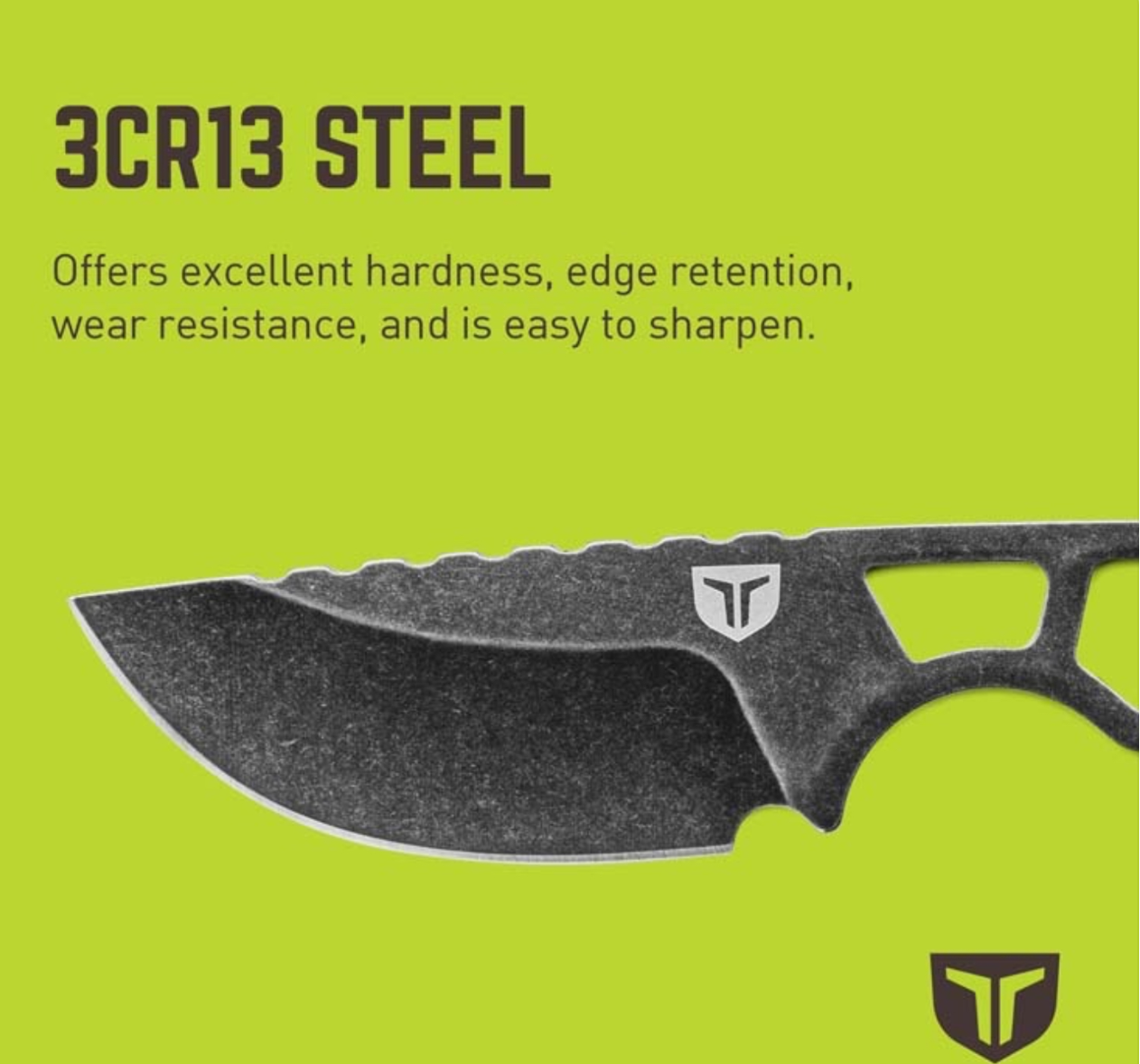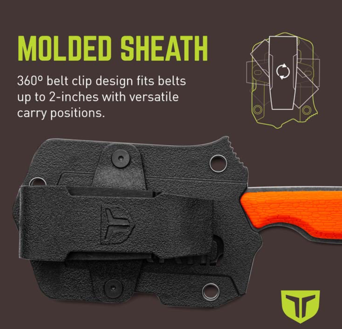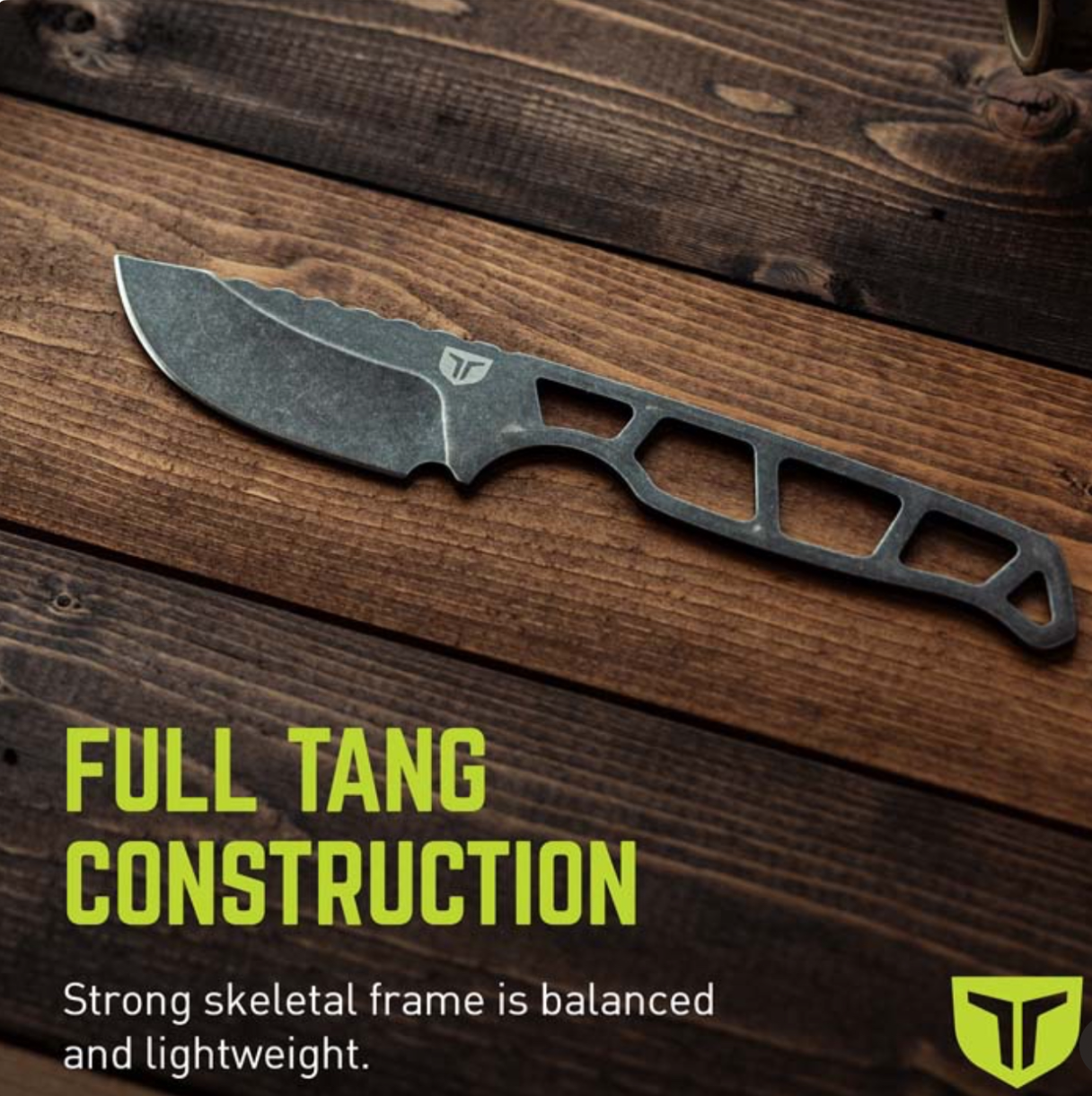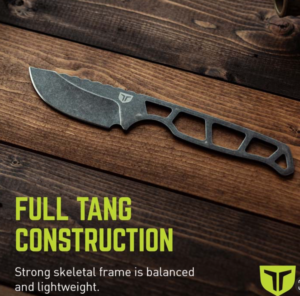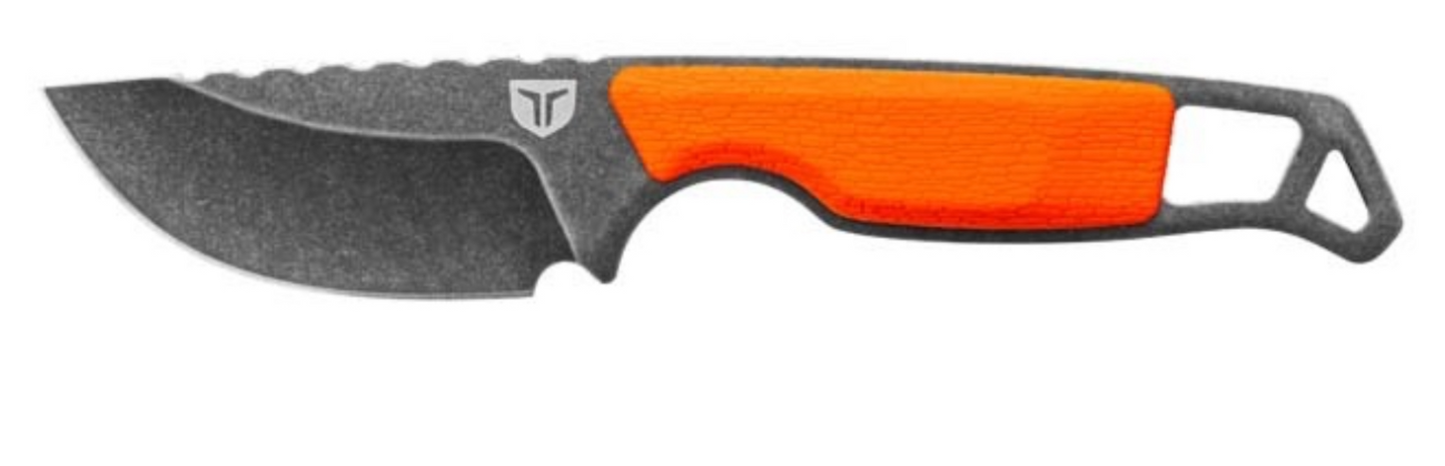 Hunt with Confidence Designed specifically for hunters seeking a compact and durable fixed-blade hunting knife, this tool is a reliable companion for skinning tasks in the field. With a nearly 3-inch cutting length, it excels at slicing and trimming while remaining manageable for smaller game. The full tang and blade are crafted from 3Cr13 stainless steel, offering excellent hardness, edge retention, and high resistance to wear and corrosion, making it easy to sharpen. The knife features a black oxide stonewash finish, providing a rustic matte look that effectively conceals scratches and wear. Its lightweight skeletal frame is paired with TraxGrip™ textured handle scales, striking the perfect balance between cushioning, ergonomics, and traction for confident control in wet conditions. The scales are removable, antimicrobial, and easy to clean, and they’re interchangeable with any NEKKID knife design from TRUE. Accompanying the knife is a custom-molded sheath designed to fit all knives in the NEKKID family. The removable clip rotates 360 degrees, accommodating multiple carry positions and fitting belts up to 2 inches wide, while also allowing for quick attachment to any MOLLE system. When the clip is removed, the sheath is compatible with ULTICLP® and TEK-LOK® systems for added adaptability. THE NEKKID® SERIES
