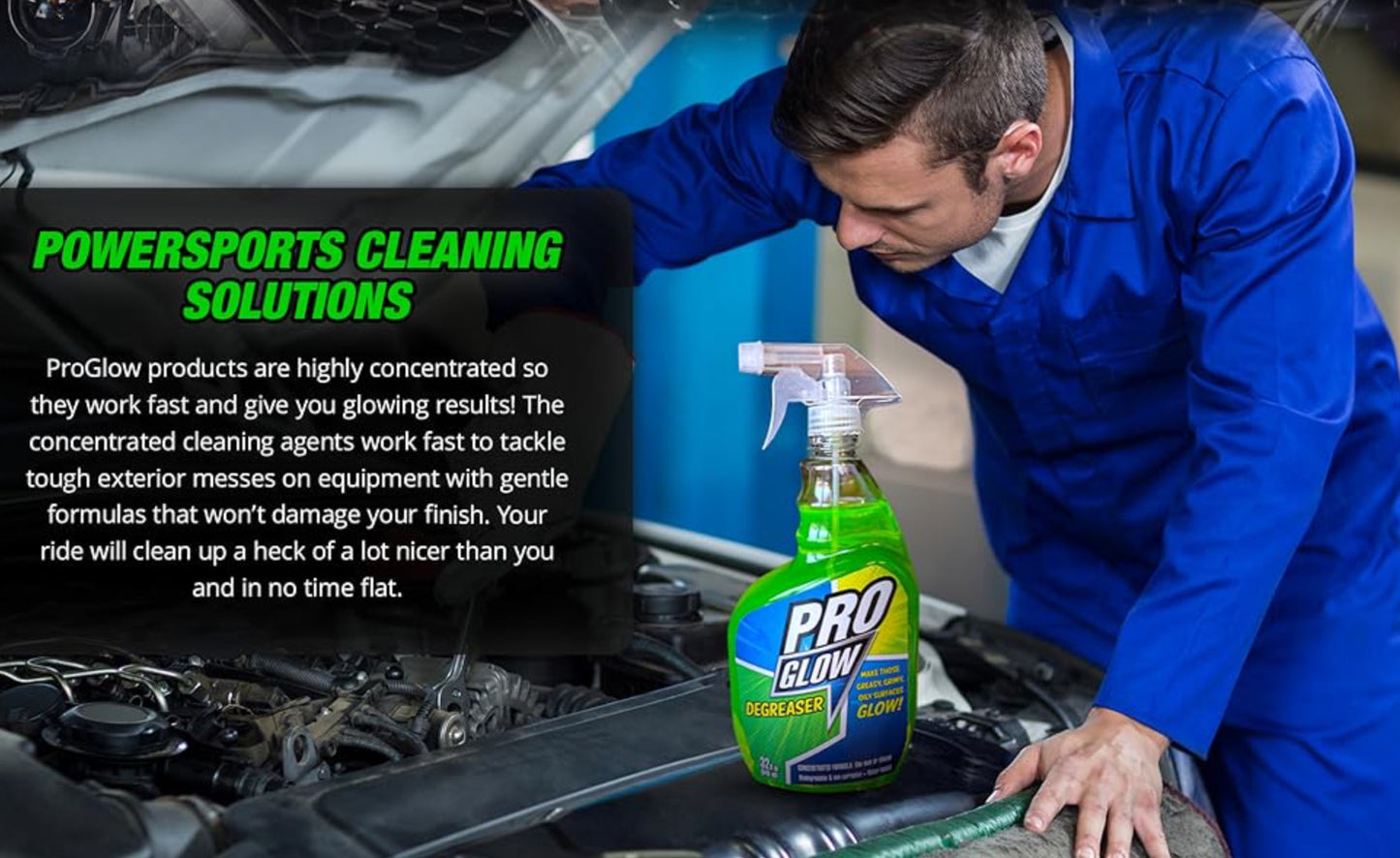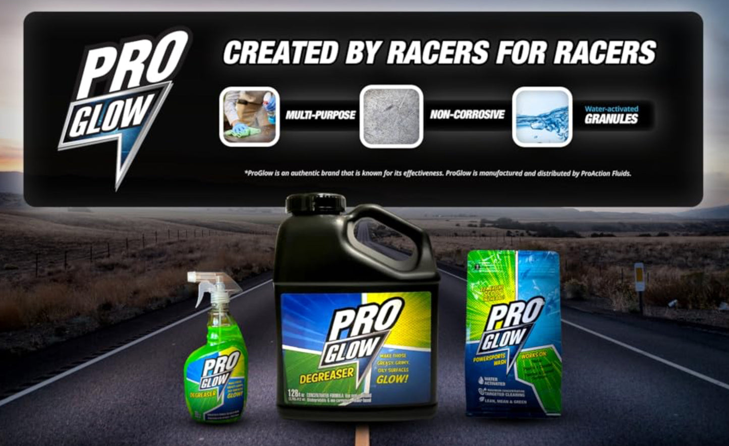 Pro Glow Degreaser 128 oz This isn’t just any degreaser; it’s an environmentally safe game-changer meticulously crafted to elevate your maintenance routine and keep your equipment looking and racing like new. We’re committed to keeping your ride and equipment in pristine condition.