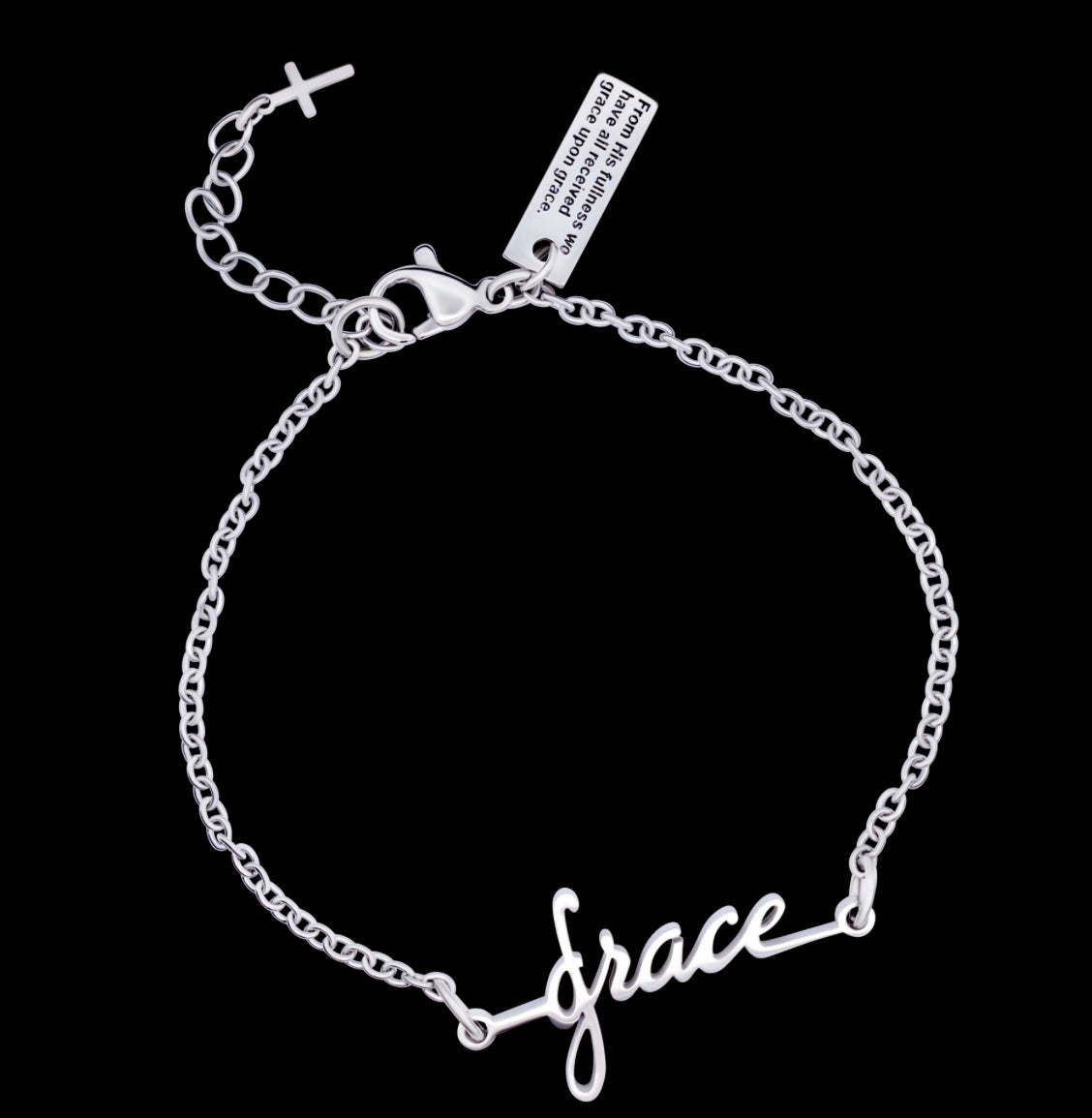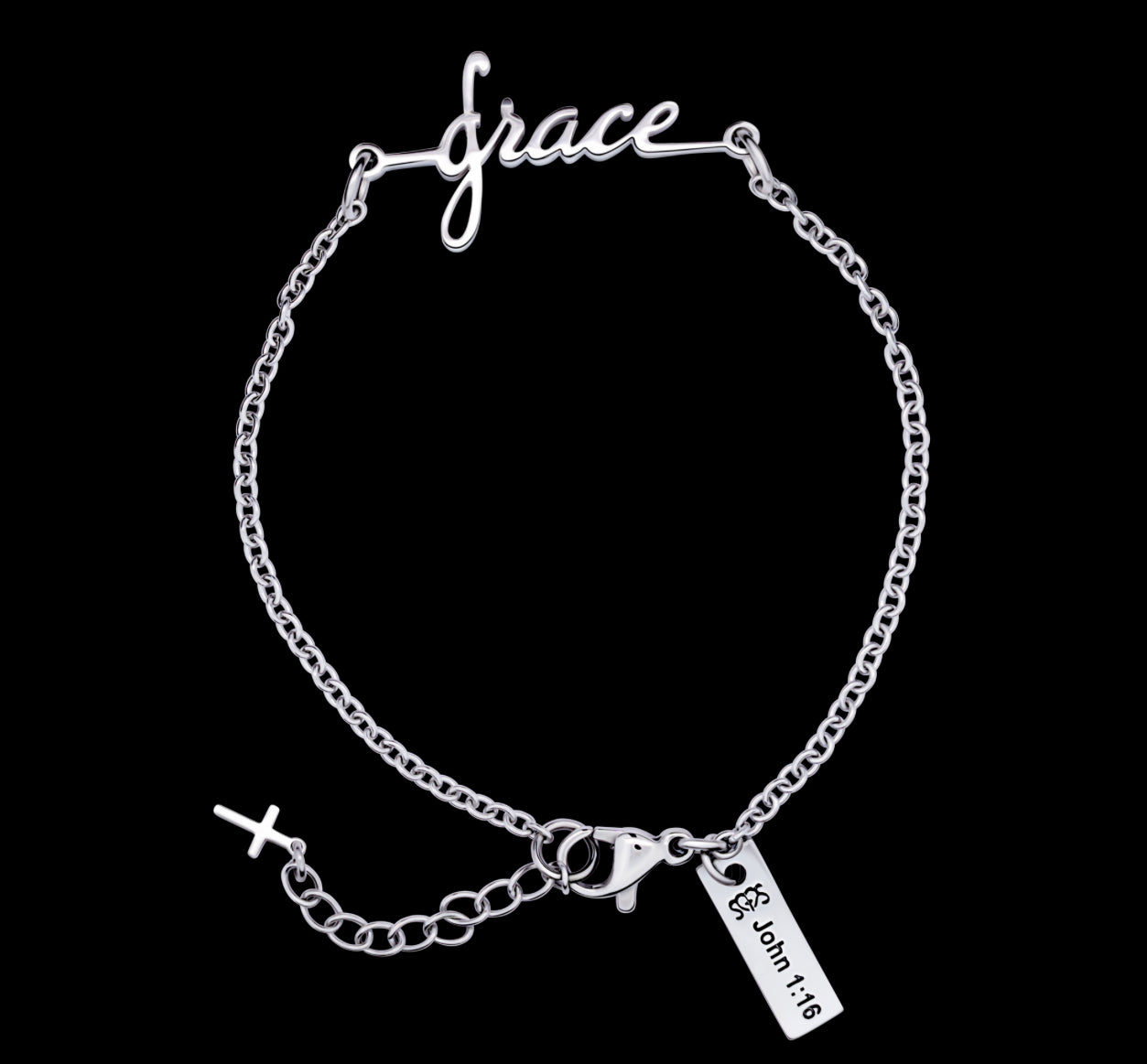 SCRIPTURE - On the end of the bracelet near the clasp is the inscription of John 1:16 which reads, "From His fullness we have all received grace upon grace.”