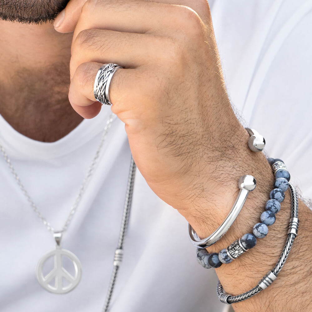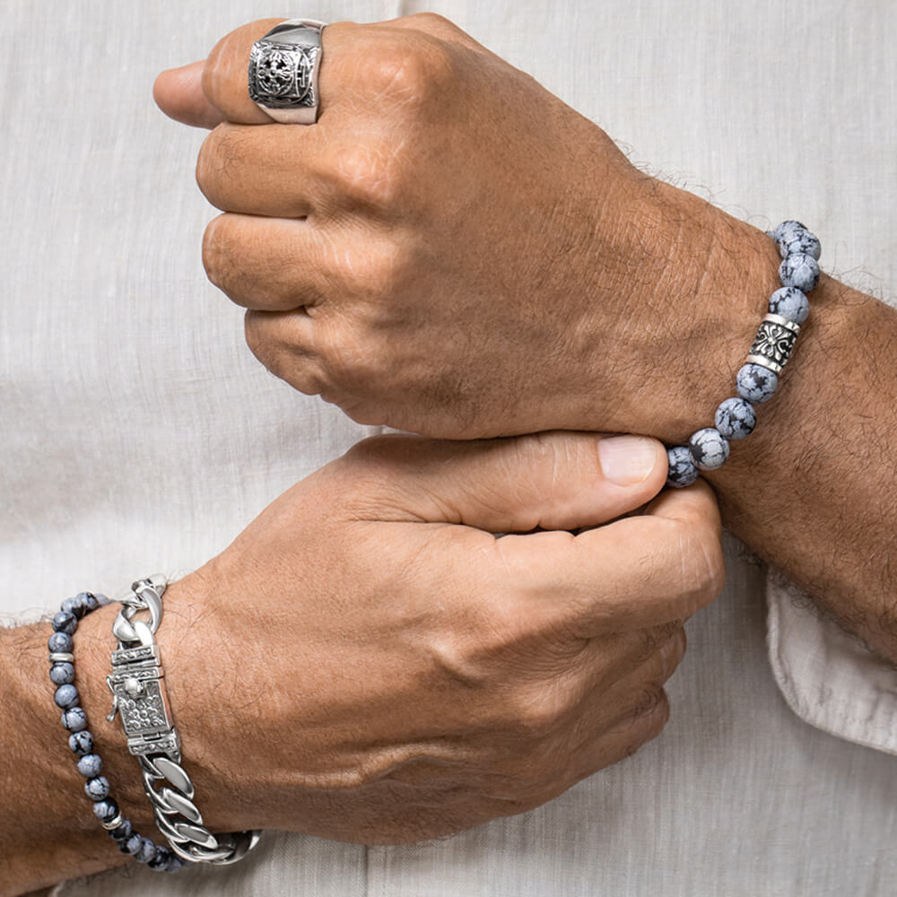 - Stone Type: Matte Snowflake Obsidian