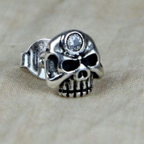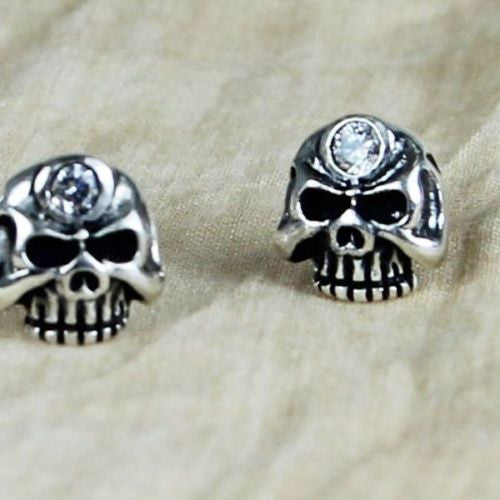 High-Quality Stud Skull Earrings, made of 925 Sterling Silver with CZ Stones.
